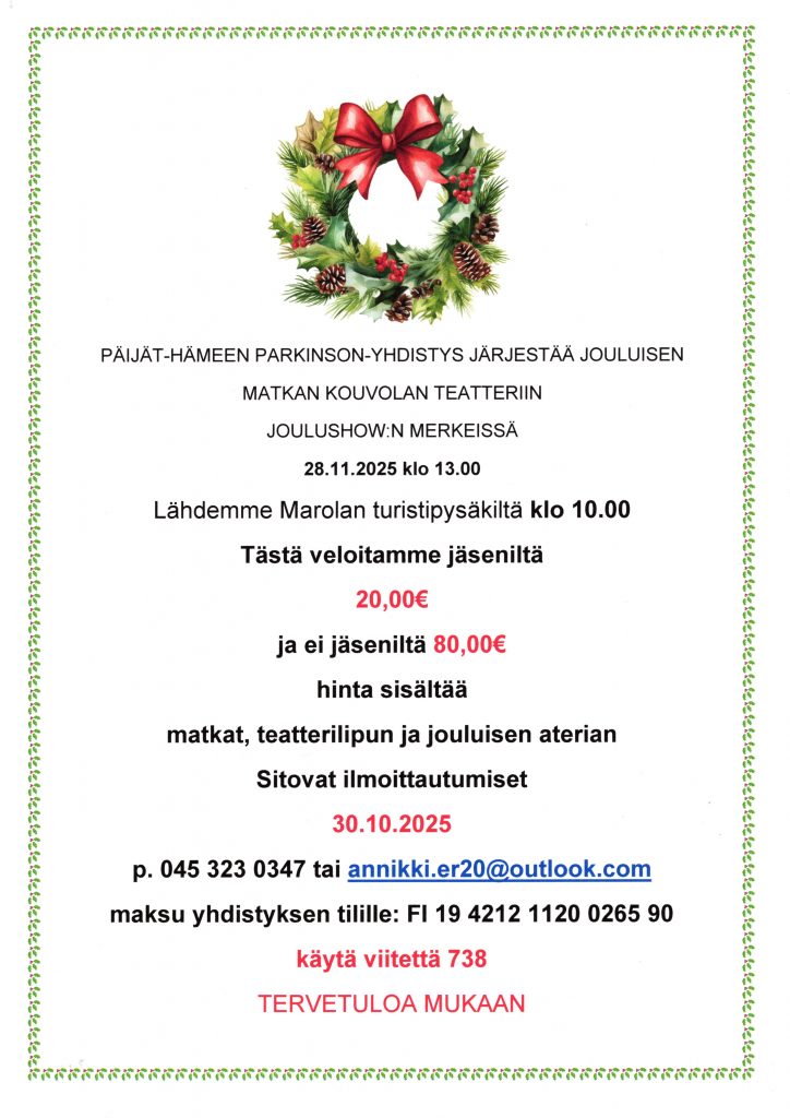 Kuukausitapaaminen, Pikkujoulu 4.12.2025, alken klo 10.00