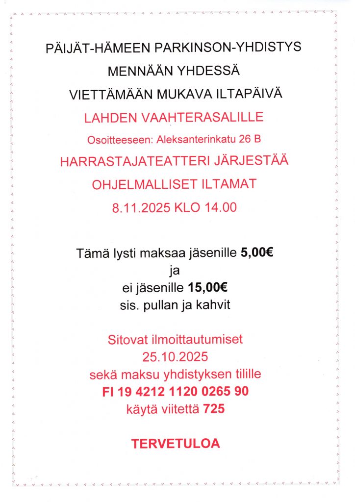 Tule mukaan juttelemaan Parkinson-taudista ja vähän muustakin.