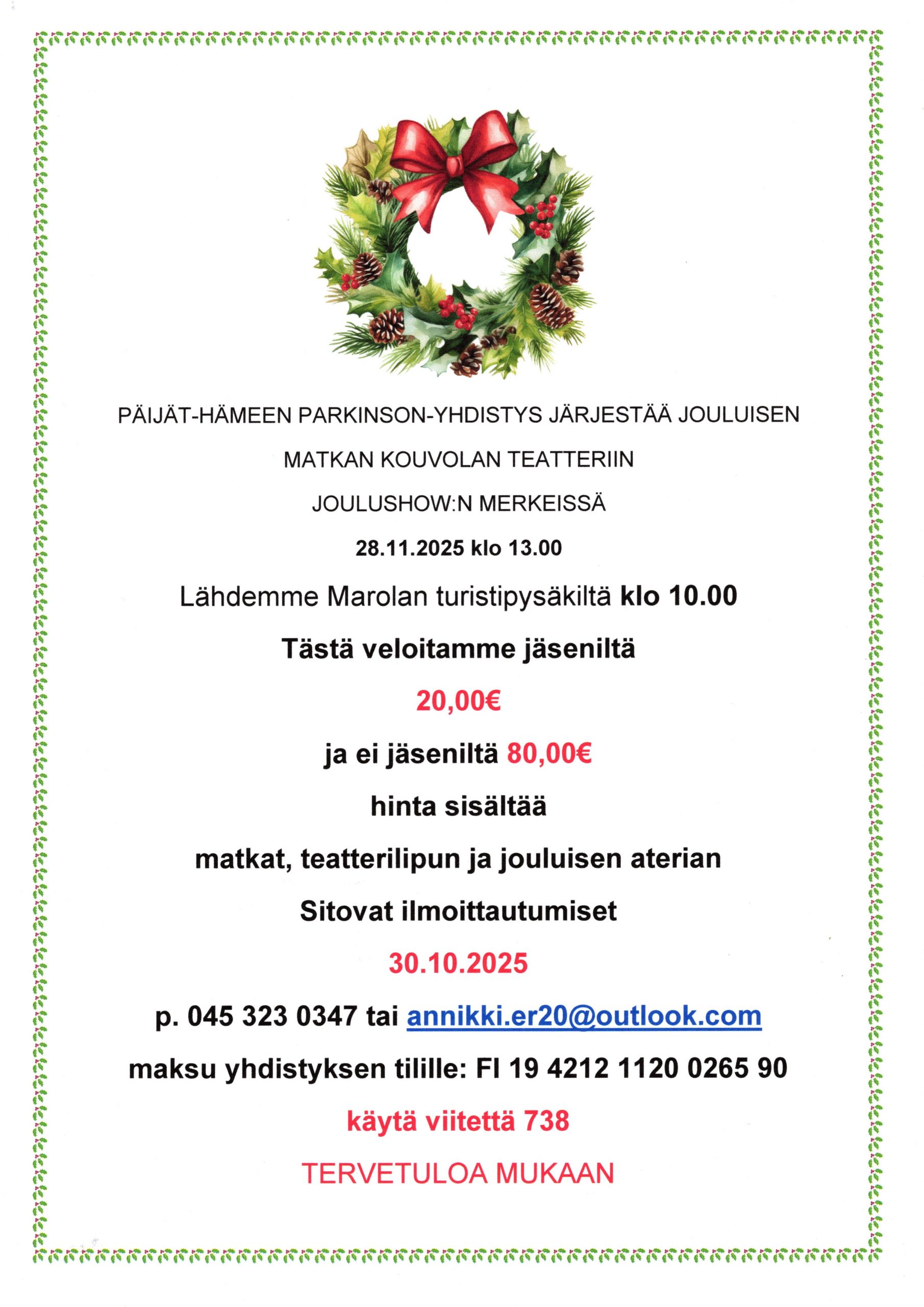 Kuukausitapaaminen, Pikkujoulu 4.12.2025, alken klo 10.00