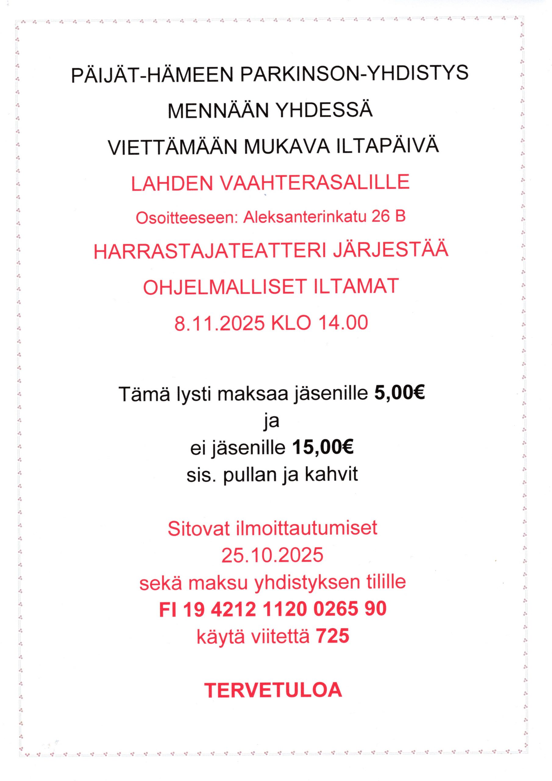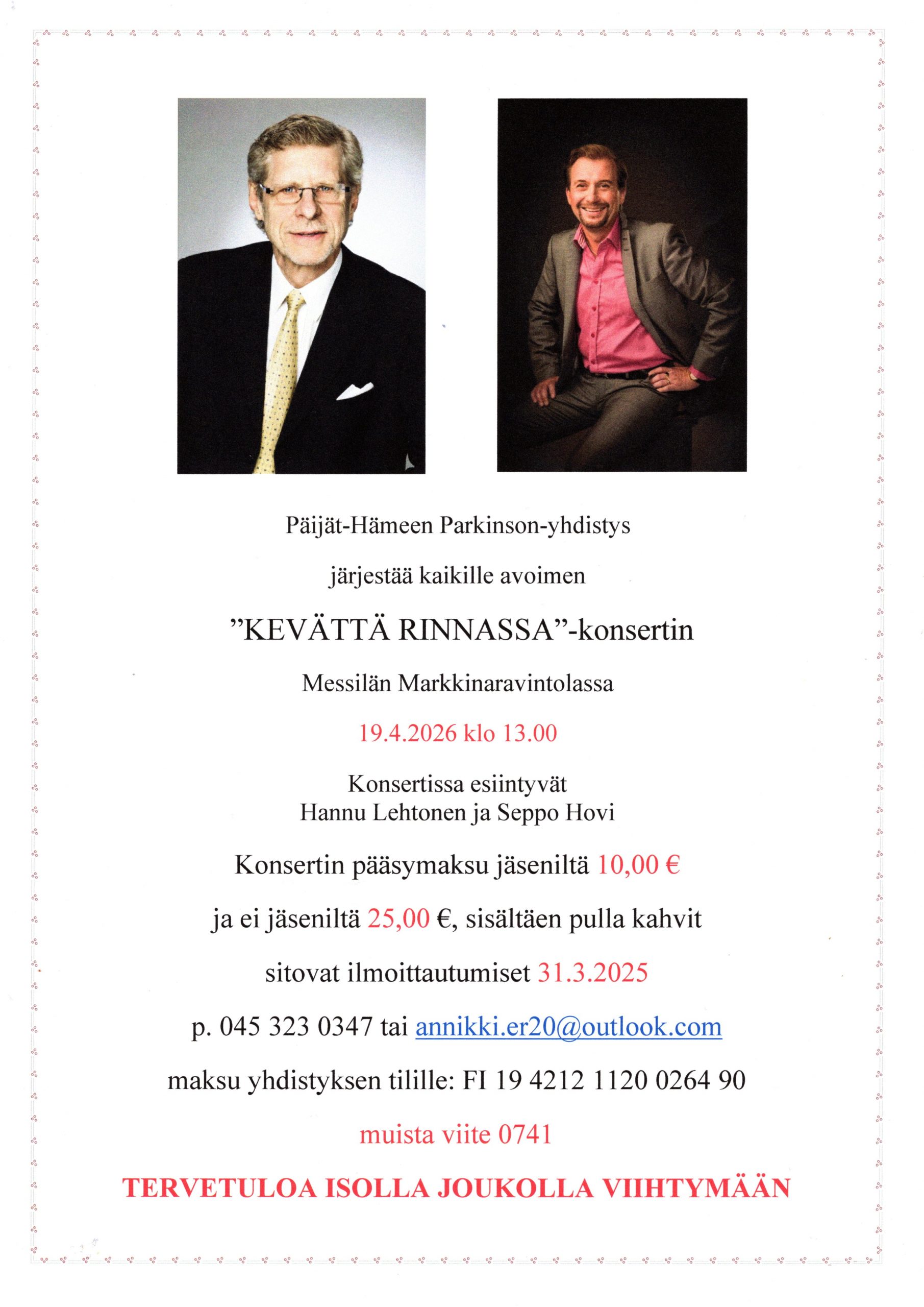 Tule mukaan juttelemaan Parkinson-taudista ja vähän muustakin.