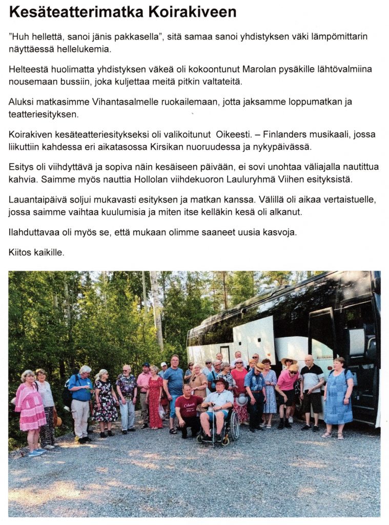 Yhdistys kiittää Karia mahtavasta päivästä, jonka hänen miljöö tarjosi meille.