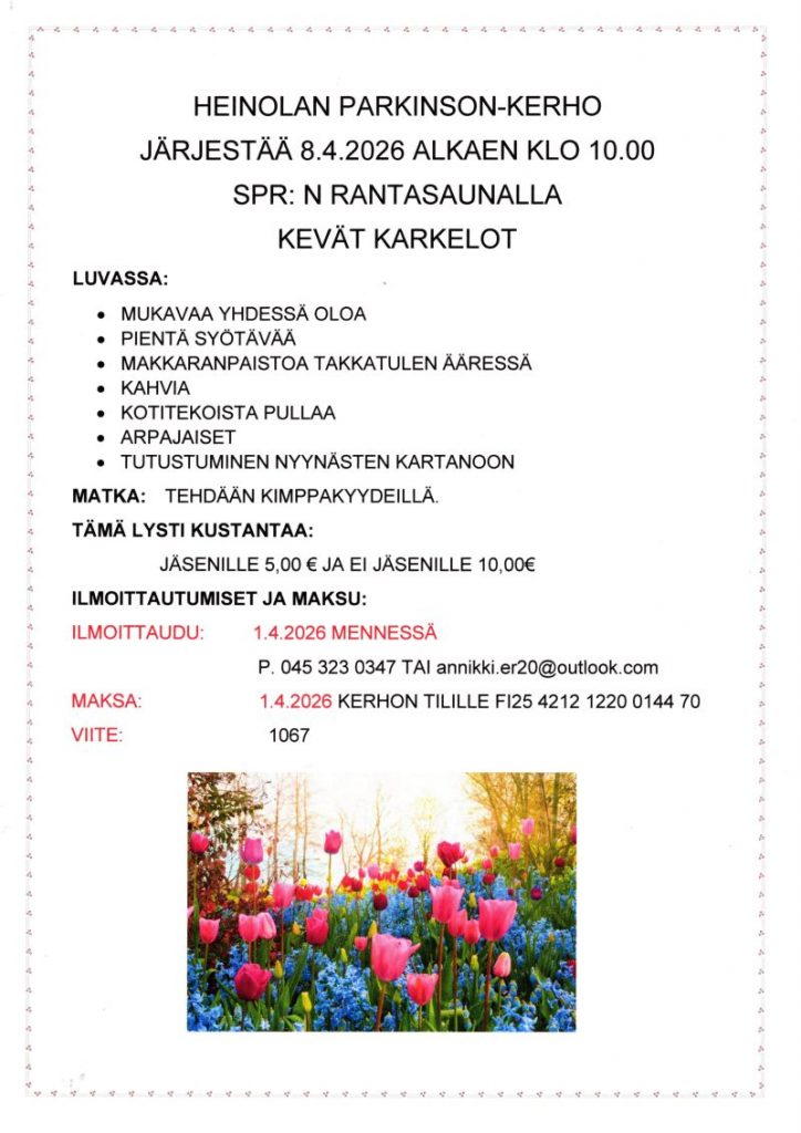 Tule mukaan juttelemaan Parkinson-taudista ja vähän muustakin.